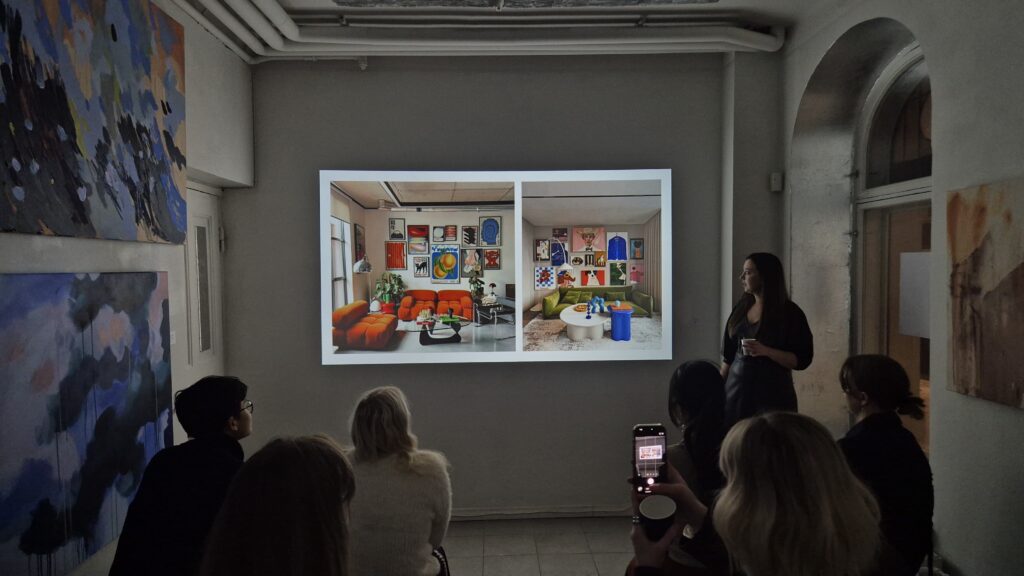 These lectures are designed to combine theory, analysis, and practical guidance, and are structured in three parts. First, participants are introduced to iconic interior examples as reference points. Then, the lecturer explains the key principles of selecting and placing art — scale, context, and function. Finally, participants work together on real-life spatial scenarios: they select actual artworks from the gallery and consider how to place them within specific interiors, applying the principles they have learned.